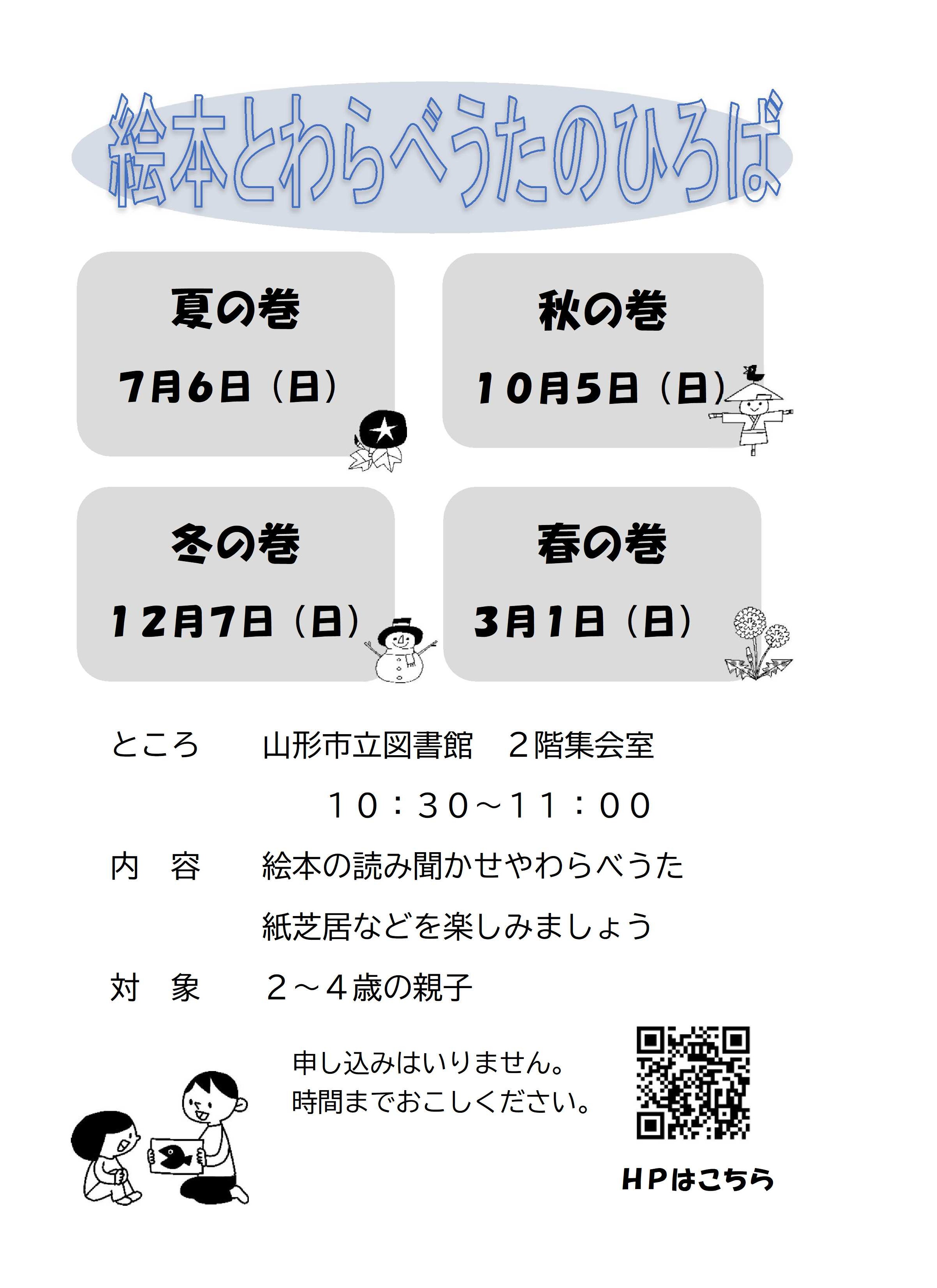 詳細内容 絵本の読み聞かせやわらべうた、紙しばいを楽しみましょう。