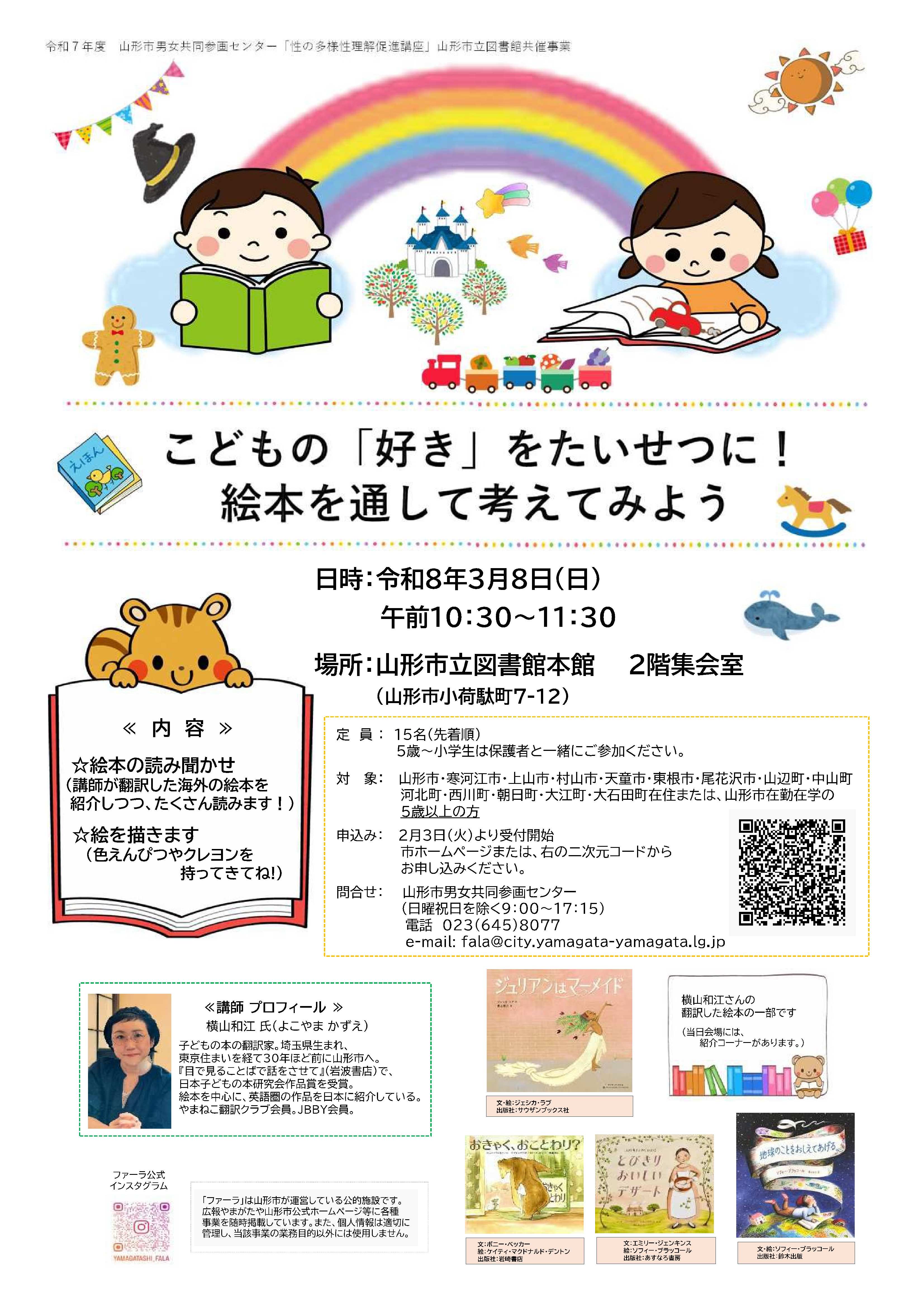 その他 このイベントは山形市男女共同参画センターとの共催企画です。詳細は男女共同参画センターまでお問い合わせください。