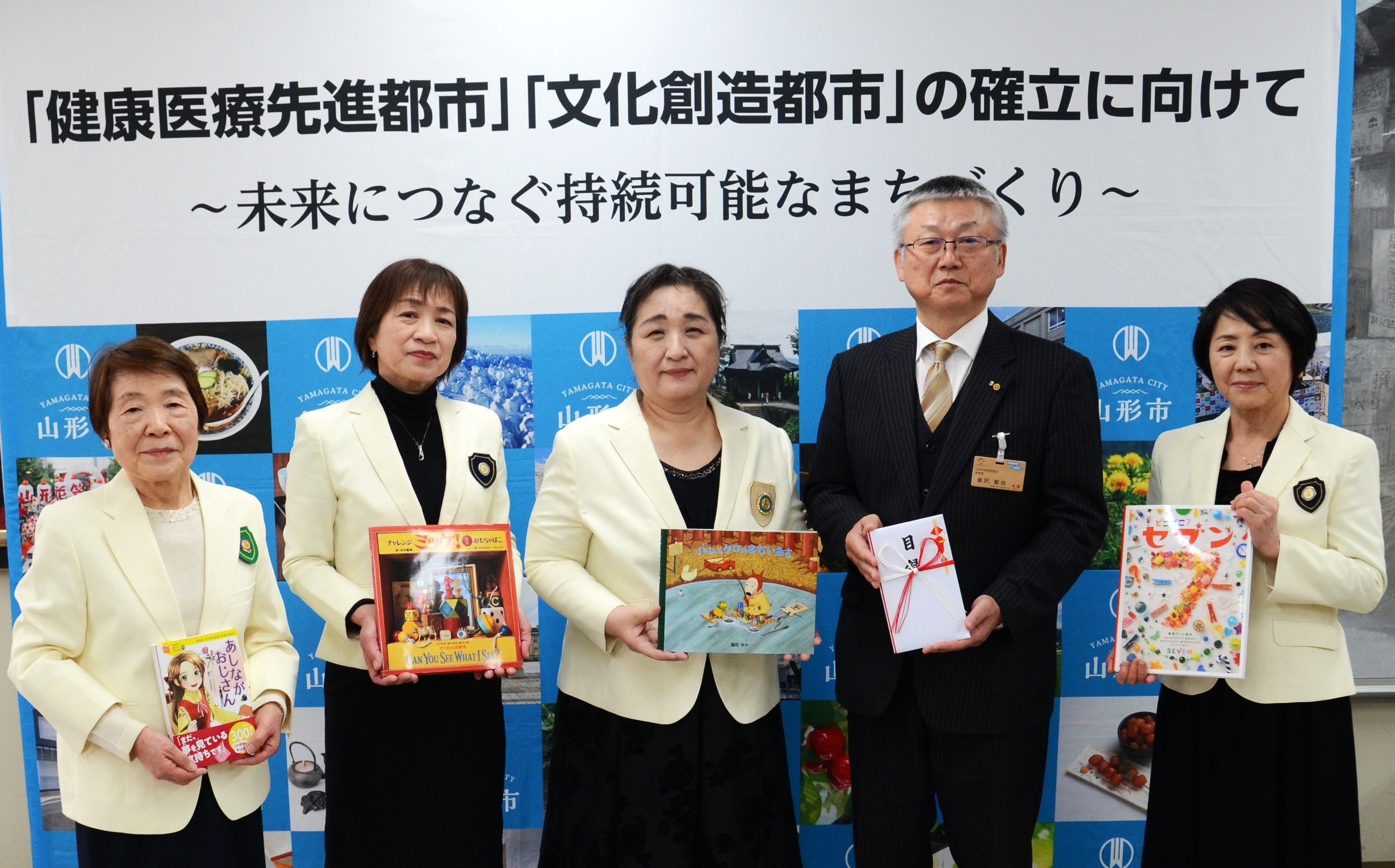 国際ソロプチミスト山形(会長 笹原 史恵)様より、子どもたちの豊かな想像力や知識を育む読書環境の充実ため、令和8年3月18日、寄附目録受領式において、児童書119冊のご寄贈がありました。 貴重な寄附をいただき誠にありがとうございます。 より多くの子どもたちに本に触れていただけるよう有効に活用させていただきます。